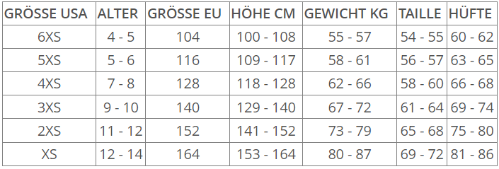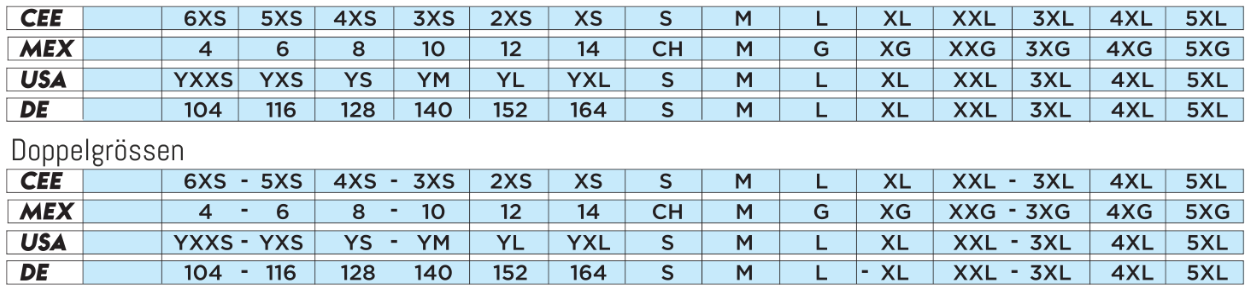 GRÖSSEN TABELLE
